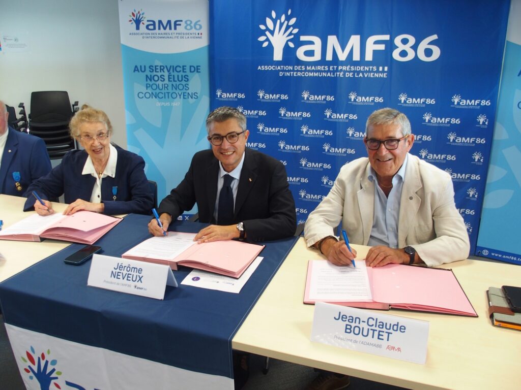 L’Association des maires et présidents d’intercommunalité de la Vienne (AMF 86), l’Association départementale des anciens maires et adjoints de la Vienne (ADAMA 86) et l’Association nationale des membres de l’Ordre National du Mérite – Section de la Vienne (ANMONM 86) ont signé vendredi 19 septembre 2025 à la Maison des communes une convention de partenariat.
