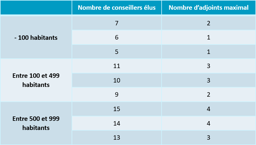 | Commune de moins de 1 000 habitants | Commune de 1 000 habitants et plus | |
