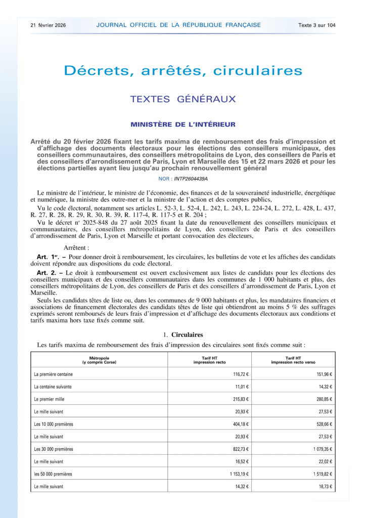 Dernière mise à jour : 19 février 2025 – Décision du Conseil d’État sur l’affichage sur les permanences électorales